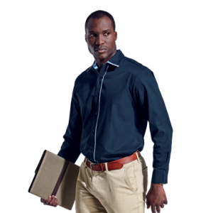 Contrast oxford trim on inner cuffs, inner placket and collar stand