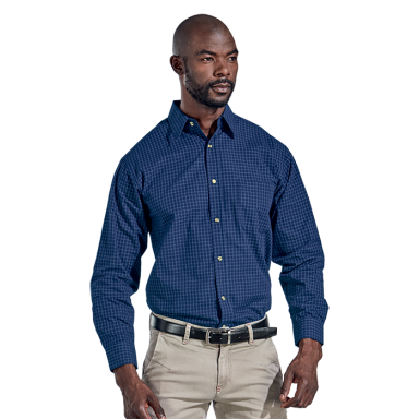 Corporate design using a yarn-dyed pattern to complement the garment’s subtle embroidery